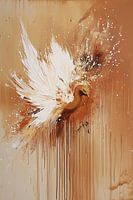 Dit prachtige abstracte schilderij toont de krachtige beweging van een pauw in warme sepia en beige tinten. De dynamische lijnen en de spetters van verf geven een gevoel van energie en beweging. Het ontwerp straalt elegantie en rust uit, wat het een perfecte aanvulling maakt voor een slaapkamer of kantoor. Het samenspel van kleuren en…