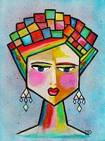 Mijn schilderij Abstract Portret  Frida is mijn eigen pittige draai aan de iconische Mexicaanse surrealistische kunstschilderes Frida. Ik heb haar complexe karakter in een abstracte vorm gegoten die haar kleurrijke persoonlijkheid tot leven brengt, maar dan met mijn eigen lef en flair.