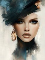 Abstract portret in blauw en wit met gouden accenten. Perfect voor een modern chic interieur. Een bijzondere blikvanger voor je interieur! Kies zelf het formaat en materiaal bij dit werk en maak het helemaal naar wens.