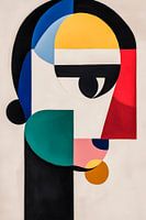 Krachtige kleuren en geometrische vormen vormen samen een fascinerend portret dat de kijker boeit. De harmonieuze combinatie van blauw, rood en zachte aardetinten creëert een moderne sfeer. Ideaal voor een woonkamer, het geeft de kamer een uniek karakter en inspireert tot creatieve gesprekken.