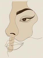 Deze minimalistische en elegante afbeelding toont een gestileerd zijaanzicht van een vrouwelijk gezicht. De kunstenaar heeft gebruik gemaakt van dunne, vloeiende lijnen om de contouren van het gezicht te schetsen, gecombineerd met zachte beige en bruine tinten die subtiele schaduwen en diepte toevoegen. De eenvoud van de lijnen en de…