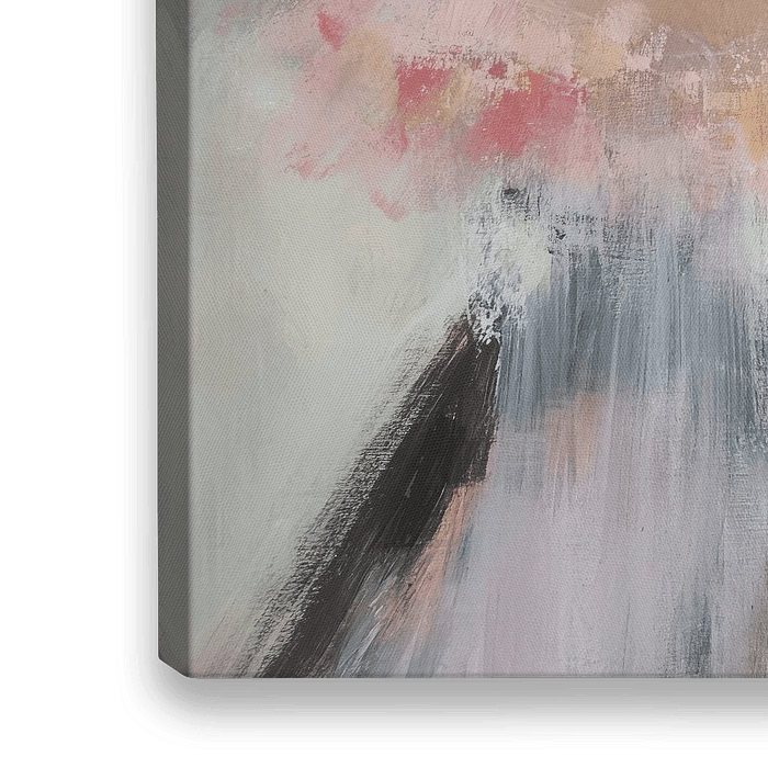 Een dromerig en teder kunstwerk, waarin een vrouw met de rug naar ons toe staat, gehuld in een delicate, wazige jurk die subtiele kleuren van roze, groen en crème bevat. De zachte penseelstreken en de nevelige sfeer geven haar een bijna etherisch, ongrijpbaar karakter, alsof ze zich net tussen de droomwereld en de realiteit bevindt.