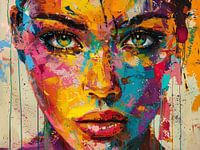 Levendig, modern en abstract portret. Een opvallende blikvanger voor je interieur! Kies zelf het formaat en materiaal van dit werk en stem het volledig af op jouw wensen.