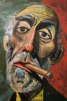 Koop dit portret Abstract portret met felle kleuren en sigaar van Imperial Art House op canvas, aluminium dibond, (ingelijste) fotoprint, behang en ArtFrame, op maat geprint in Fine-Art kwaliteit.