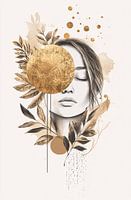 Dit unieke kunstwerk combineert verfijnde lijnen en zachte kleuren met opvallende gouden accenten. Het portret van een serene vrouw wordt omringd door natuurlijke elementen zoals bladeren, wat een harmonieuze en rustgevende uitstraling geeft. Dit ontwerp past perfect in moderne en minimalistische interieurs en voegt een vleugje elegantie toe aan elke ruimte. De combinatie van abstracte vormen en realistische details maakt het een opvallende blikvanger voor zowel thuis als op kantoor.