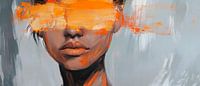 Een fascinerend samenspel van kleuren en expressie dat diepe gevoelens verhult. De zachte, warme oranje tinten contrasteren met koele grijstinten en geven een kamer een harmonieuze en toch mysterieuze sfeer. De ideale metgezel voor een moderne woonkamer of een creatief kantoor waar inspiratie leeft.