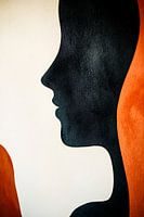 Dit unieke ontwerp combineert eenvoud en abstractie in een opvallend silhouetontwerp. Met een minimalistische stijl en krachtige kleurcontrasten vormt het een echte blikvanger in elke moderne ruimte. De zwarte en witte vormen worden harmonieus omlijst door warme oranje en beige tinten, wat het ontwerp zowel rustgevend als dynamisch…