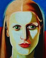 Vanaf mijn jeugd heb ik ontzag voor de kunstenaar Picasso. Wat hem zo bijzonder maakt is dat hij gedurende zijn hele leven verschillende stijlen beheerste en met alle beschikbare technieken werkte. Zijn uitspraak: "Het kostte me 4 jaar om te leren schilderen als Caravaggio, maar mijn hele leven om te leren schilderen als een kind." Dit portret van een vrouw hoort thuis in mijn serie gemaakt met Picasso in mijn gedachten.