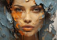 Dit werk presenteert een lichte abstractie van innerlijke kracht. Haar ogen, vol van vastberadenheid, kijken recht in de ziel van de toeschouwer. Het spel van licht en schaduw geeft diepte aan de uitdrukking, waarbij de vrouwelijke kracht op een indringende manier wordt geaccentueerd. De lichte abstractie voegt een mysterieuze dimensie toe, waarbij het portret een gevoel van intrinsieke vitaliteit en zelfverzekerdheid uitstraalt. Het geheel straalt een tijdloze elegantie uit, waarbij de vrouw met haar donkere haar een symbool wordt van innerlijke kracht en veerkracht.