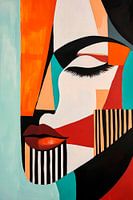 Een levendig samenspel van geometrische vormen en felle kleuren vat de essentie van een modern gezicht. De combinatie van zachte rondingen en opvallende lijnen creëert een harmonieuze balans die tot nadenken stemt. Dit kunstwerk is perfect voor een stijlvolle woonkamer, brengt frisse energie en maakt een boeiend statement.