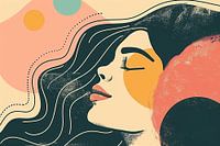 Dit prachtige ontwerp combineert de zachte, vloeiende lijnen van een vrouwelijke figuur met gedurfde, abstracte vormen in een harmonieuze compositie. De kleurenpalet van warme, levendige tinten creëert een serene en toch dynamische sfeer. De abstracte vormen rondom de vrouw voegen een modern, artistiek tintje toe dat perfect past in hedendaagse interieurs. Dit kunstwerk straalt rust en elegantie uit, en zou een prachtige aanvulling zijn op een moderne slaapkamer, kantoor of woonkamer. Het ontwerp nodigt uit tot reflectie en bewondering, terwijl het tegelijkertijd een statement maakt door zijn minimalistische en toch expressieve stijl. Een ideale keuze voor iedereen die zijn ruimte wil verrijken met een vleugje verfijning en artistieke flair.