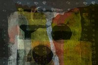 Op Mark Rothko geïnspireerde gele, grijze en zwarte vormen.Dina Dankers Abstract in neon aardetinten. Geel, verbrand oranje, terra.Dina Dankers