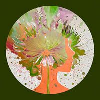 Koop dit bloemen kunstwerk Abstract rond schilderij: Vrouw in Dandelion - groene rand van Studio Pieternel op canvas, aluminium dibond, (ingelijste) fotoprint, behang en ArtFrame, op maat geprint in Fine-Art kwaliteit.