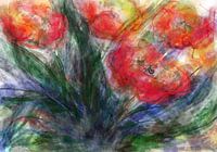Koop dit bloemen kunstwerk Abstract schilderij - Bloemen in rood van arte factum berlin als print op canvas, aluminium dibond, (ingelijste) fotoprint, behang en ArtFrame. Voor jou op maat geprint in Fine-Art kwaliteit.