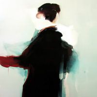 Abstract schilderij "De passant". Dit schilderij maakt deel uit van een serie van vier met dezelfde titel. Heel sterk als vierluik in dezelfde ruimte of hetzelfde gebouw, maar ook al sterk als "eenling". Heb je interesse in de overige drie werken? Vul dan in de zoekbalk "De passant" in en je ziet de hele serie. Bijzonder abstract schilderij en bedekte tinten voornamelijk wit en zwart met een snufje rood en pastelblauw /pastelgroen.
