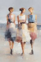 abstract schilderij, vrouwen schilderij, schilderij pastelkleuren, zomerse kunst, figuratief schilderij, schilderij drie vrouwen, schilderij jurken, kunst pastel, kunstwerk voor modern interieur, schilderij zomer