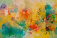 Abstract schilderij met een kleurrijke mix van vormen en kleuren die samen een dynamisch en levendig beeld creëren. De kleuren lijken te dansen op het canvas wat zorgt voor een gevoel van beweging.