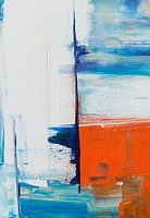Grafisch abstract schilderij met blauwe en oranje componenten
