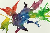 Voor een project is mij gevraagd om schilderijen te maken in de regenboog kleuren. Het was geweldig leuk om te doen. Mijn keukenblad zat volgeplakt met wel acht grote vellen aquarel papier. Niemand mocht de keuken meer in, want er mochten natuurlijk geen waterspetters van de kraan op komen. Na veel verf gemengd te hebben, kon ik naar hartenlust experimenteren. Er zijn verschillende soorten kunstwerken uit gekomen, dus kijk gerust ook even naar de anderen. Ze zijn te vinden in mijn online shop en kies dan voor de map abstract.