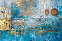 Trefwoorden: Abstract , Blauw, Turquoise, Goud, Hedendaags , Impasto, Sgraffito, expressionisme, modern wonen
