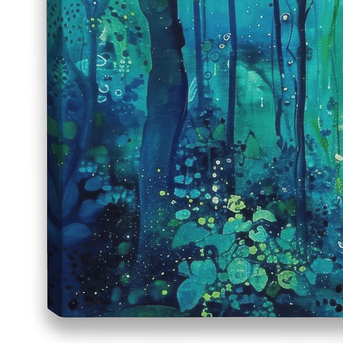 Abstract schilderij in turquoise en groen – Dromerig boslandschap voor een rustgevend interieur