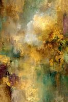 Een dans van warme goud- en groentinten die samen een betoverende herfstgloed oproepen. Dit werk komt bijzonder mooi tot zijn recht in groot formaat, waar de rijke texturen en nuances nog sterker spreken.