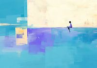 Abstract schilderij met bewoner - Abstract schilderij: Modern met mensje.