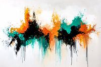 Dit unieke abstracte schilderij trekt onmiddellijk de aandacht met zijn levendige kleuren en dynamische uitstraling. De contrasterende tinten van oranje, zwart, groen en turquoise spatten van het canvas en creëren een energieke en moderne sfeer. Dit kunstwerk is perfect voor een eigentijdse inrichting en kan een eyecatcher zijn in verschillende ruimtes, zoals de woonkamer, eetkamer of kantoor. De vrije, expressieve penseelstreken geven een gevoel van beweging en creativiteit, waardoor het schilderij een inspirerende toevoeging is aan elk interieur. Een perfecte keuze voor liefhebbers van moderne kunst en opvallende decoratieve elementen.
