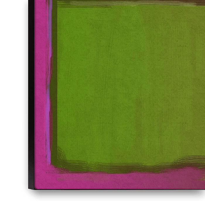 Koop dit abstracte kunstwerk Abstract schilderij met roze en groene kleurvlakken van Rietje Bulthuis op canvas, aluminium dibond, (ingelijste) fotoprint, behang en ArtFrame, op maat geprint in Fine-Art kwaliteit.