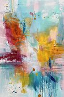 Trefwoorden: abstract schilderij turquoise oker, kleurrijke moderne wanddecoratie, kunstwerk met turquoise en geel, expressief abstract canvas, moderne schilderijen woonkamer, harmonieuze kleurrijke schilderijen, abstract kunstwerk met rood en roze, levendige wanddecoratie kunst, multicolor abstract schilderij, eigentijdse kunst voor interieur