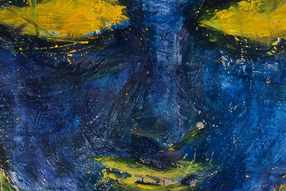 Dit unieke abstracte schilderij toont een gezicht in levendige blauwe en gele tinten. De dynamische penseelstreken en de contrasterende kleuren geven het kunstwerk een levendige energie, perfect voor moderne interieurs. Dit kunstwerk is een echte eyecatcher en brengt kleur en beweging in elke ruimte. Het gezicht, hoewel abstract weergegeven, straalt een zekere mystiek uit en nodigt de kijker uit tot interpretatie. Plaats het in een kantoor of slaapkamer om een artistieke touch toe te voegen die zowel inspirerend als ontspannend werkt.