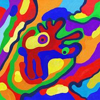 Abstracte kunst (lees ook abstractie) is een richting binnen de moderne kunst waarin niet altijd wordt geprobeerd om objecten uit de natuurlijke wereld weer te geven en er geen zaken uit de reële wereld hoeven te zijn afgebeeld. Er kunnen onderliggende principes zichtbaar gemaakt met vormen en kleuren, ritmes en contrasten. Dit werk is geinspireerd op Cobra-kunst. De Cobra-kunstenaars verlangden in hun werk een vrije spontane uitdrukkingswijze te bereiken, waarbij zij terug wilden keren naar de bron van het scheppen. Zij lieten zich daarbij inspireren door tekeningen en schilderijen van kinderen en geesteszieken en door het eigen handschrift als meest persoonlijke uiting en van daaruit op Oosterse kalligrafie. Daarnaast zagen zij de in het begin van de 20e eeuw opererende schilders Pablo Picasso, Paul Klee, Joan Miró en Wassily Kandinsky als hun grote voorgangers in de moderne kunst.