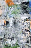 Abstract modern schilderij in de kleuren: zwart, wit, blauw, groen, mosterdgeel.