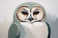 Dit serene ontwerp toont een prachtig gestileerde uil in minimalistische vorm. Met zachte grijs- en beigetinten en opvallende bruine ogen straalt het een gevoel van rust en eenvoud uit. Het ontwerp is perfect geschikt voor moderne interieurs, vooral in slaapkamers of kantoren waar een kalmerende sfeer gewenst is. De uil is zorgvuldig afgebeeld met zachte, vloeiende lijnen, wat het kunstwerk een subtiele, maar stijlvolle uitstraling geeft. Het monochrome kleurenpalet zorgt voor een harmonieus geheel, waardoor het gemakkelijk in verschillende ruimtes kan worden geïntegreerd. Dit is een ideaal kunstwerk voor liefhebbers van moderne en minimalistische kunst die een natuurlijk, maar toch artistiek element in hun interieur willen brengen.
