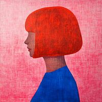 Abstract silhouet van een vrouw in rode, roze en blauwe tinten.