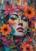 Abstract surrealisme van meisje met bloem Pop Art portret