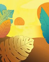 Als u meer details van deze illustratie wilt zien, bezoek dan mijn website waar u verschillende close-up-weergaven kunt vinden: https://www.tmu-creativeworks.nl/portfolio/abstract-tropisch-landschap-bij-zonsondergang-2/