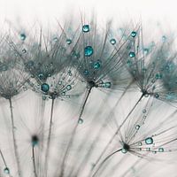 "Abstract turqouise: In een lijnenspel uit de natuur" is een macrofoto van turquoise druppels op de pluisjes van een paardenbloem.