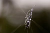 Close-up van dauwdruppeltjes in een spinnenweb.