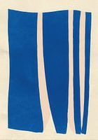 Dit abstracte kunstwerk op een crèmekleurige achtergrond bestaat uit verticale elementen in verschillende tinten blauw en perzik/crème. De blauwe elementen bestaan uit gedurfde kleurblokken, terwijl de dunnere perzik/crème vormen ertussen lopen en subtiele accenten creëren. De verticale opstelling creëert dynamiek, beweging en een harmonieus contrast binnen de minimalistische compositie. Het ontwerp maakt indruk met zijn heldere lijnen, kleurcontrasten en geometrische precisie. Het spreekt liefhebbers van moderne, abstracte kunst aan die houden van elegante, minimalistische structuren en expressieve kleurcomposities.