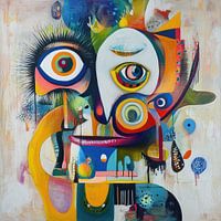 Abstract vreemd gezicht schilderij is een fascinerend kunstwerk dat de grenzen van het traditionele portret verlegt. In plaats van een herkenbaar gezicht, zie je een speelse en vervreemdende compositie van vormen, kleuren en lijnen die samen een mysterieus en bijna surrealistisch gezicht suggereren. Het werk prikkelt de verbeelding en nodigt uit tot interpretatie: is het een lach, een masker, of iets geheel anders?
