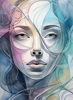 Abstract vrouwenportret in pasteltinten