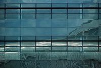 lijnenspel in weerspiegeling in blauw zwart wit