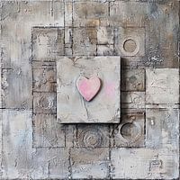 Wanddecoratie met een abstracte weergave van een roze hart op een industriële achtergrond in warme, zachte tinten.