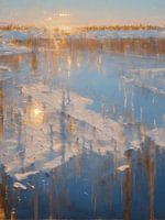 Ontdek de betovering van mijn koude koele abstracte winterlandschapsschildering. Laat de bevroren pracht met schaatsende en wandelende figuren op het ijs je ruimte vullen met winterse magie. Breng de serene schoonheid van de winter in huis met dit kunstwerk vol levendige momenten op een ijskoude dag. Dit schilderij is onderdeel van een serie. Zie mijn album genaamd abstract voor meer werken.