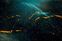 Abstract zwart blauw oranje digitale olieverf schilderij