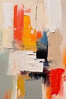 Abstract werk in rood, geel, beige en grijs