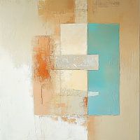 Abstract - Dit abstracte schilderij kenmerkt zich door een compositie van overlappende rechthoekige vormen in verschillende pastelkleuren, waarbij texturen en lagen een gevoel van diepte creëren.