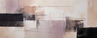 Abstracte Architecturale Diepte - Dit gestructureerde abstracte schilderij speelt met een rustig palet van beige en bruine tonen, onderbroken door krachtige zwarte accenten die zorgen voor diepte en dynamiek. De horizontale en verticale lijnen suggereren een architectonische invloed, terwijl de subtiele textuur en lagen verf de toeschouwer uitnodigen voor een tweede, meer doordachte kijk.