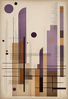 Deze compositie is geïnspireerd door de avant-garde Bauhaus-school en biedt een geraffineerd arrangement van vormen en tinten. Ontworpen met helderheid en elegantie, weerspiegelt het de doelstelling van de school om kunst en design te verenigen onder één duidelijke, functionele filosofie. Schoon en levendig, is het een perfecte keuze voor wie houdt van minimalisme met culturele diepgang en architecturale precisie.